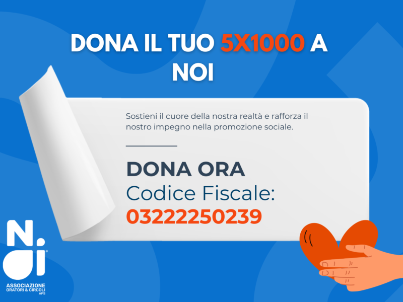 C’è un modo semplice, gratuito e concreto per sostenere il cuore della nostra comunità e rafforzare il nostro impegno nella promozione sociale: destinare il 5×1000 a NOI Associazione APS.